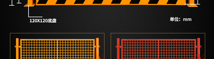 2.基坑護欄的護欄高度應不小于1200mm,護欄的高度應不小于1200mm,每套標準長度為2000mm(一套一柱一護欄)或間距從支柱的中間開始是2000mm,表面噴涂有紅色白色或黑黃色警告涂料,中間有*警告標語牌,底部有200mm(180mm)高的紅色,白色或黑黃色腳踏板。